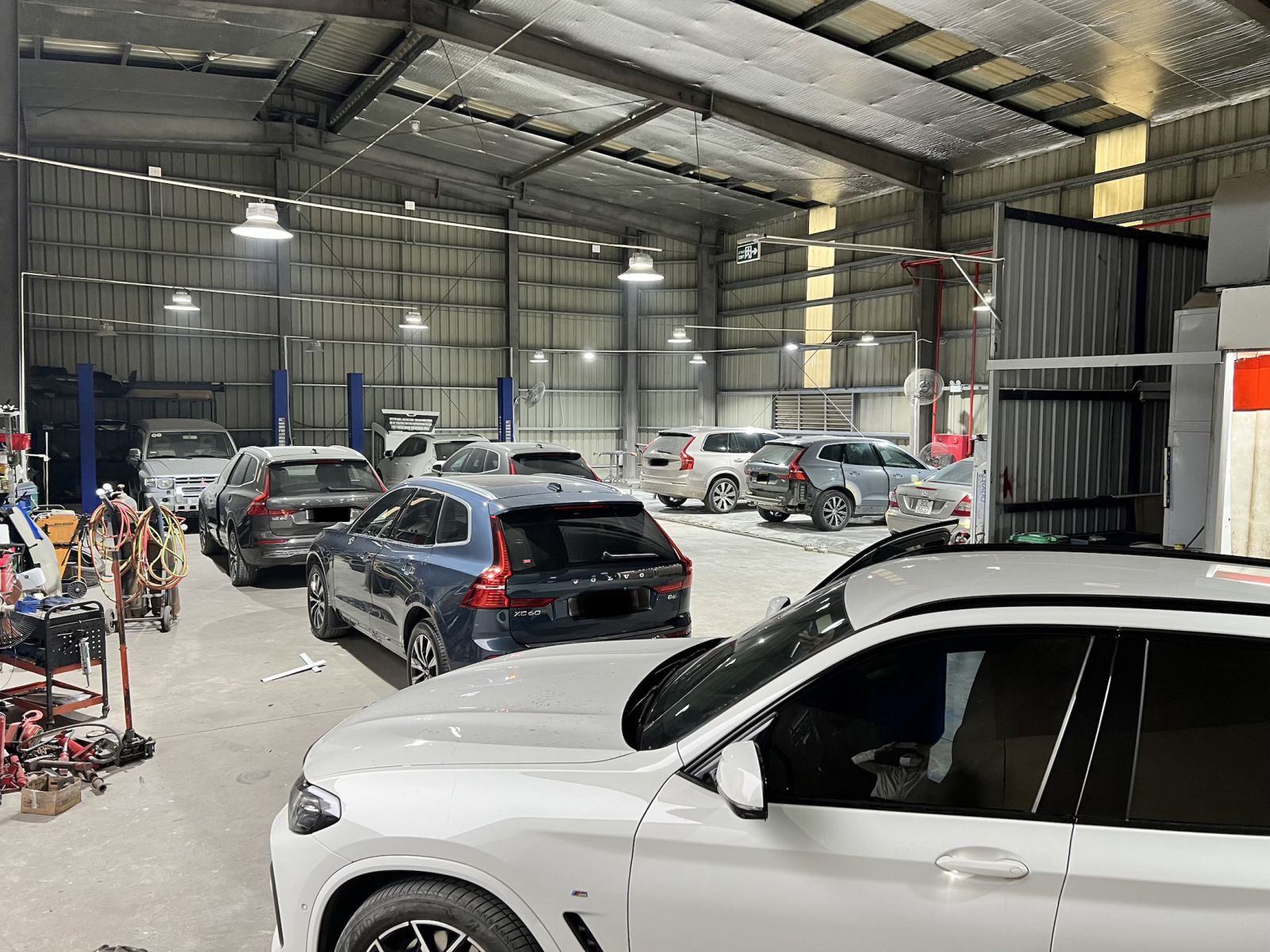 Xưởng được trang bị đầy đủ các thiết bị hiện đại như máy chẩn đoán lỗi điện tử, máy cân chỉnh thước lái, các dụng cụ tháo lắp chuyên dụng. Điều này không chỉ giúp việc sửa chữa chính xác hơn mà còn tối ưu hóa thời gian xử lý mỗi chiếc xe.